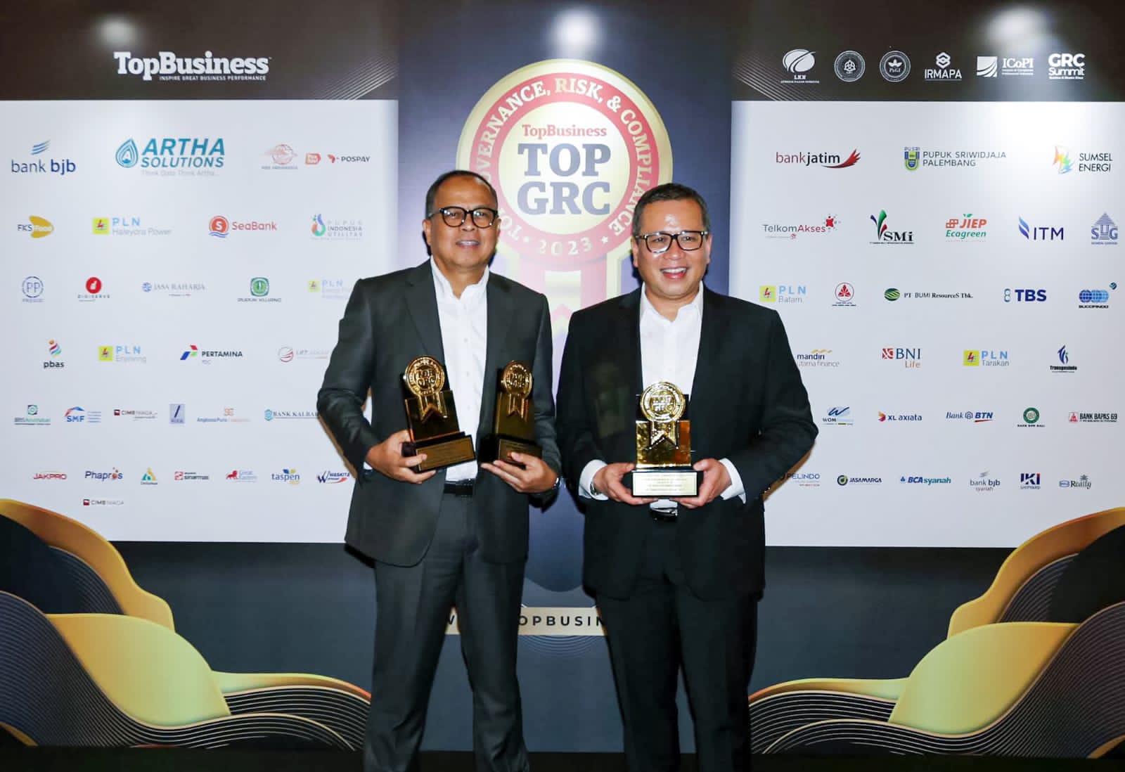 Penghargaan diterima oleh Komisaris Independen Fahlino F Sjuib dan Direktur Kepatuhan Cecep Trisna yang diberikan pada ajang Top GRC Awards 2023 di Hotel Raffles Jakarta, Rabu (6/9). Pada gelaran TOP GRC 2023 kali ini, mengusung tema “Building resilient future through ESG & GRC“.