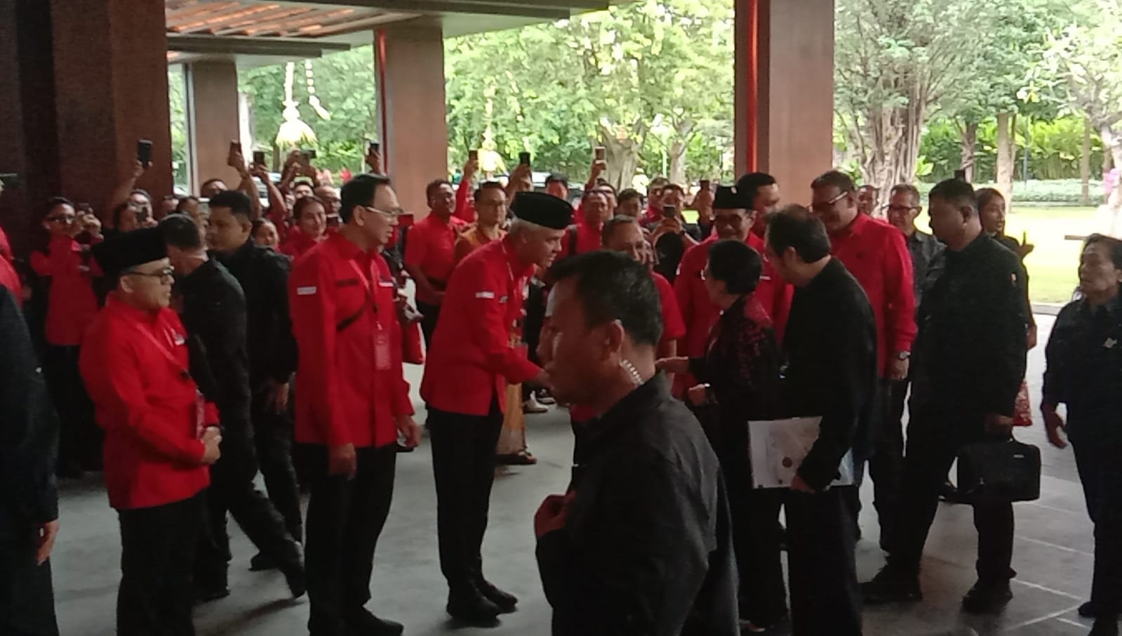 Dia langsung menyalami para kader dan disambut oleh Ketua DPP PDIP yang juga Ketua DPR RI Puan Maharani.