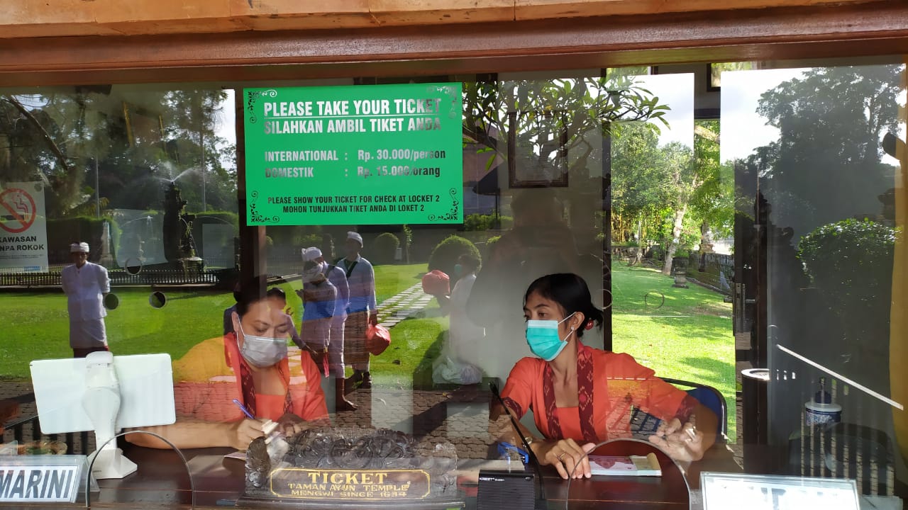 Setelah proses itu ia jalani, Kadek bersama keluarga bergantian menjalani pengecekan suhu tubuh yang dilakukan petugas di obyek wisata Taman Ayun. “Kalau begini kan enak, kita bisa melangsungkan sembahyang di Pura dengan tenang, dan menikmati suasana Taman Ayun dengan senang,” tutur Kadek sembari berjalan menuju Pura.