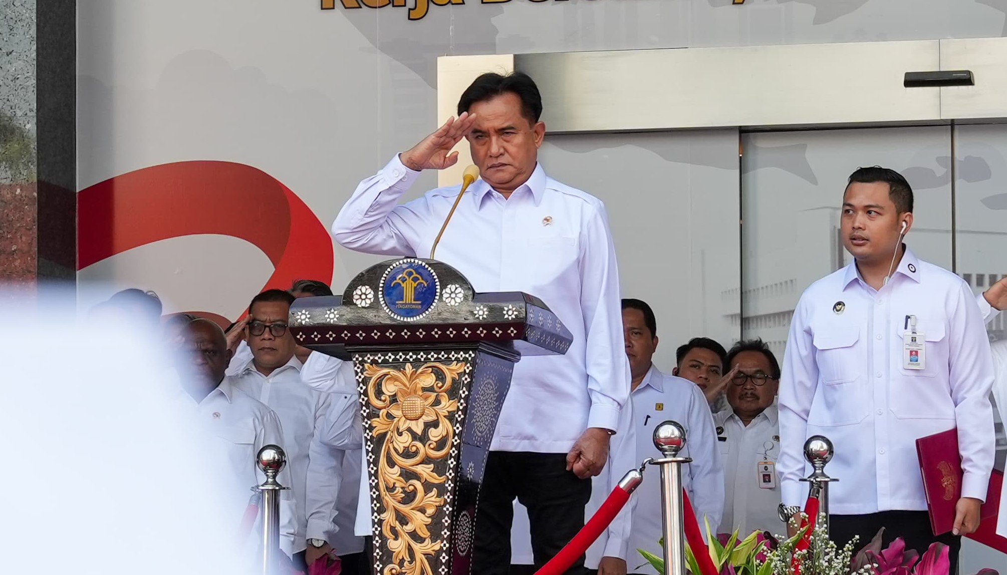 “Hal ini dimaksudkan agar kita semua dapat melaksanakan tugas dan fungsi kita dengan mengoptimalkan sumber daya yang ada dan dengan kerja bersama yang kuat agar kita menjadi bagian dari keberhasilan dalam mewujudkan Indonesia Emas Tahun 2045,” jelas Menko Yusril.