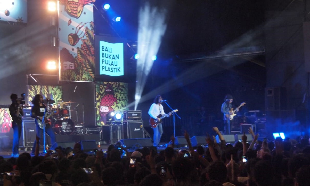 Kampanye peduli lingkungan pun digaungkan oleh Navicula dari atas panggung melalui lagu Bali Berani Berhenti. “Kita mulai dari Bali, kita bersama jaga Bali dari bahaya sampah plastik. ” teriak Robi.