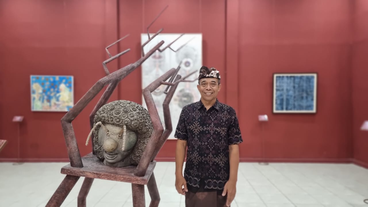 DENPASAR, Kanalbali.id – Di mandala utama Nata-Citta Art Space, Denpasar, cahaya lampu pameran menimpa permukaan kayu yang halus. Sebuah patung berdiri tegak, memancarkan aura ganjil sekaligus memikat. Paradoks Seribu Bunga, demikian judul karya itu, karya Dr. I Nyoman Suardina, S.Sn., M.Sn., dosen sekaligus seniman patung dari Institut Seni Indonesia (ISI) Bali.