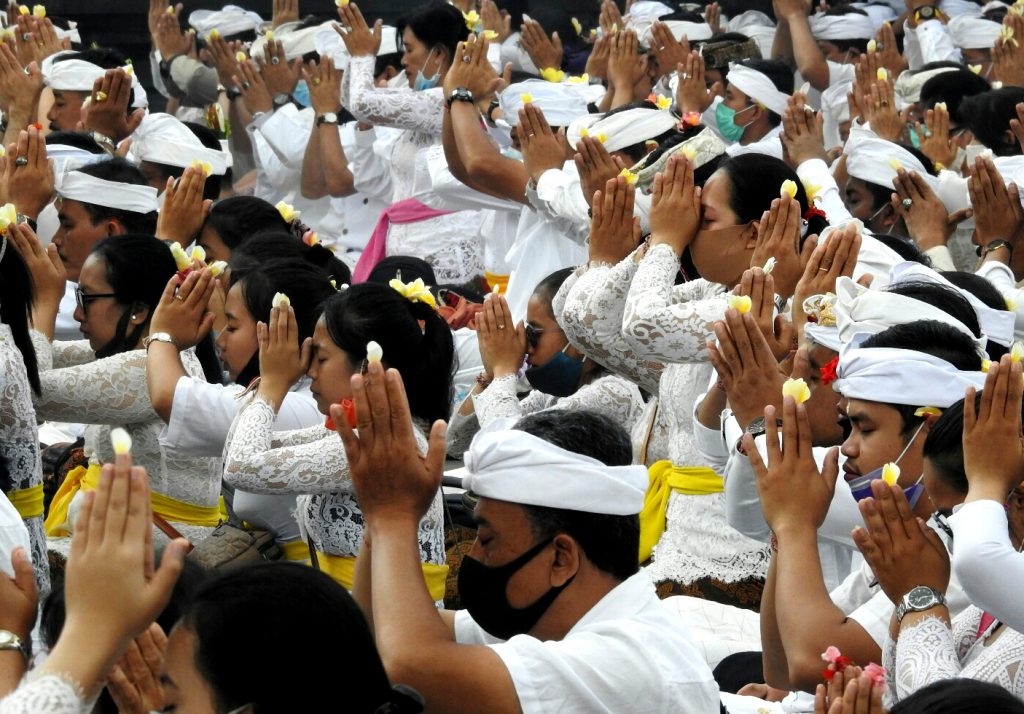 Ratusan pemadek mengikuti upacara Yadnya, Pemahayu Jagad di Pura Besakih, Minggu (4/7/2020). Ini menandai rencana dimulainya penerapan protokol tatanan kehidupan era Baru di Bali pada 9 Juli nanti. Berkah dewata pun diperlukan agar dapat berjalan aman dari COVID-19 dan masa pandemi atau gering agung bisa berakhir