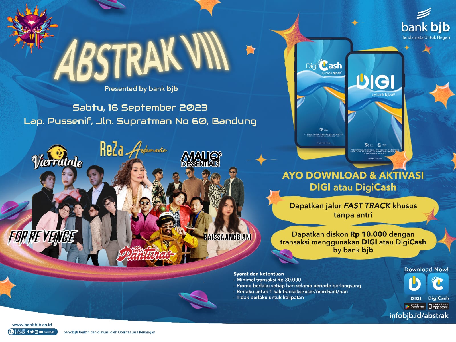 ABSTRAK VIII juga menghadirkan puluhan merchant F&B, fashion, dan area mini games. Seluruh merchant menerapkan digital payment dengan menggunakan DIGI, DigiCash, Debit Card, dan QRIS by bank bjb.