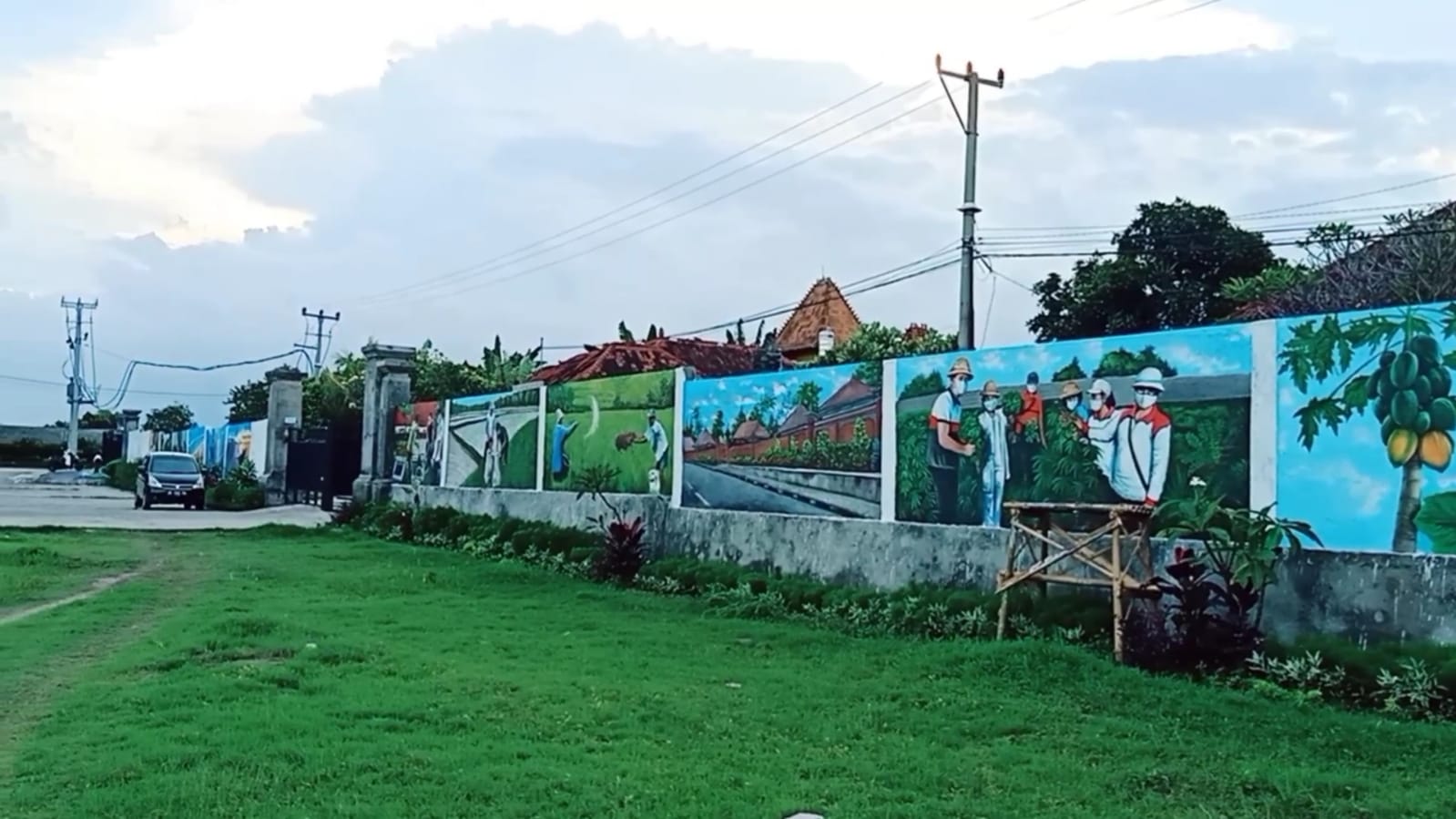 Mural tersebut, dibuat di tembok yang memiliki panjang 410 meter persegi dengan jumlah 50 lukisan, di Dusun Karangdadi, Desa Kusamba, Kabupaten Klungkung, Bali, yang dimulai pada pertengahan Juli dan saat ini sudah selesai dan pelukisnya adalah Pelukis Ketut Sumadi dari Nusa Penida, Klungkung, Bali.