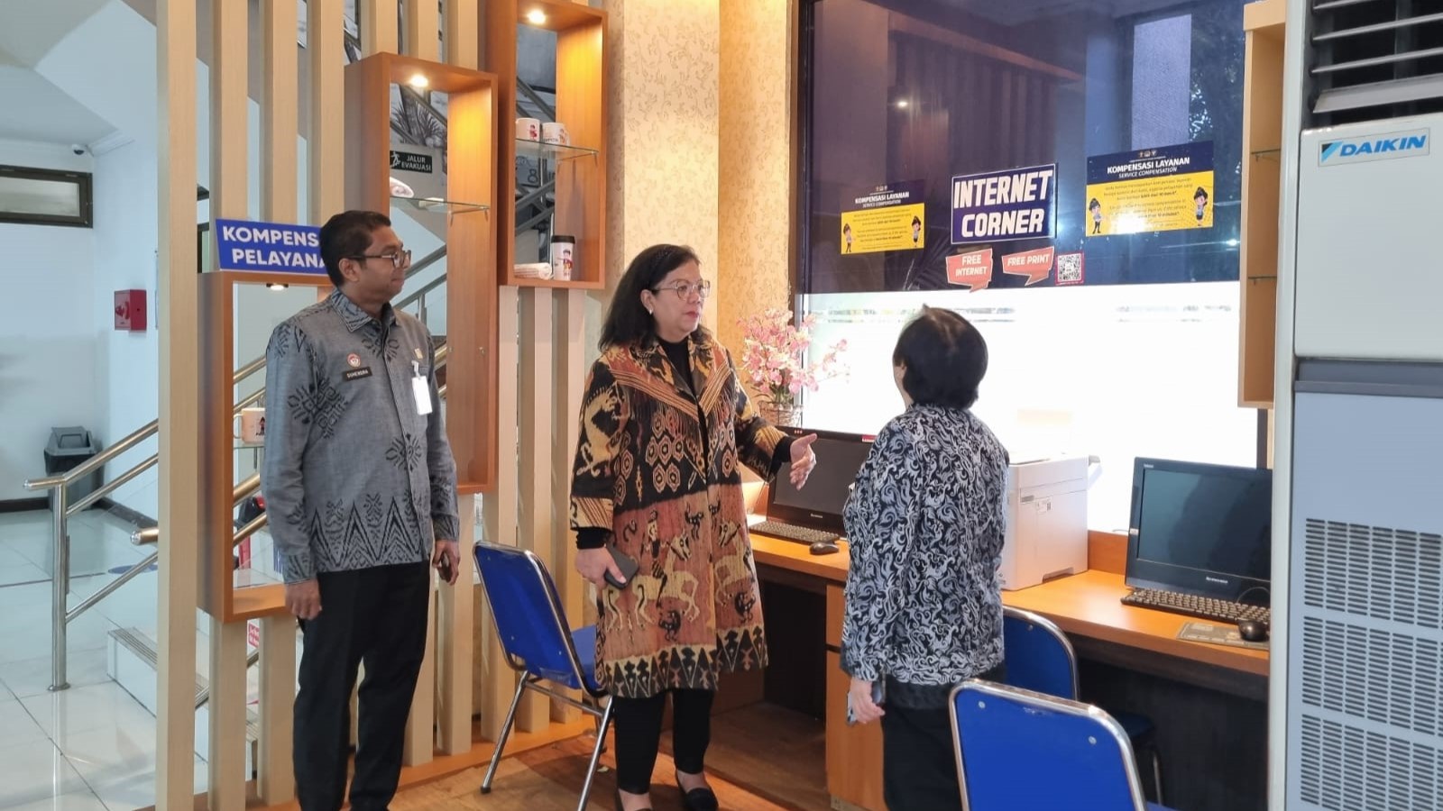 Didampingi Kepala Kantor Imigrasi Kelas 1 Khusus TPI Ngurah Rai, Suhendra, Kabid Lalu Lintas dan Status Keimigrasian, Kabid Informasi dan Sarana Komunikasi Keimigrasian, serta Kabag Tata Usaha Kantor Imigrasi Kelas 1 Khusus TPI Ngurah Rai, Pramella dan Linggawaty meninjau berbagai fasilitas dan sarana penunjang di kantor imigrasi.