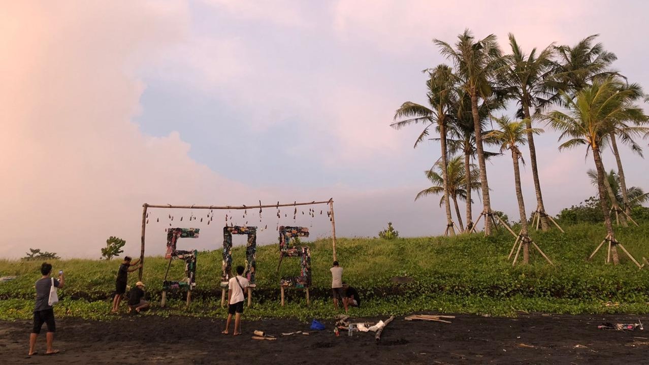 Instalasi seni dari sampah di Pantai Tabanan = IST