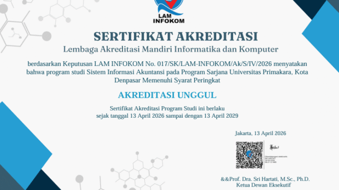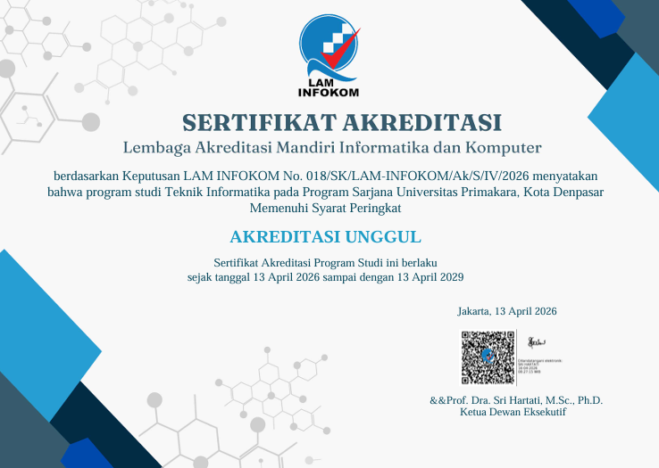 Tiga program studi di lingkungan Universitas Primakara resmi meraih Akreditasi Unggul dari Lembaga Akreditasi Mandiri Informatika dan Komputer (LAM INFOKOM).