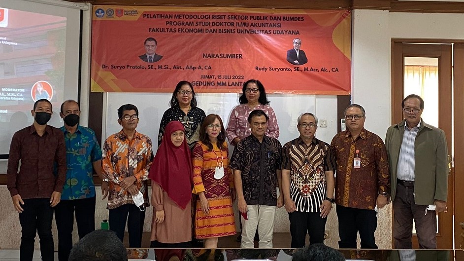 DENPASAR, kanalbali.id – Program Studi Doktor Ilmu Akuntansi Fakultas Ekonomi dan Bisnis Universitas Udayana melaksanakan Kegiatan Pelatihan Metodologi Riset Sektor Publik dan BUMDES.