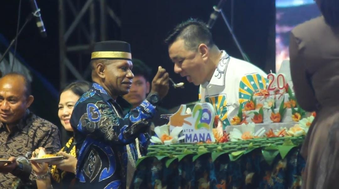 KAIMANA, kanalbali.id – Ribuan masyarakat tumpah ruah dalam kegiatan puncak Hari Ulang Tahun Ke-20 Kabupaten Kaimana Provinsi Papua Barat, Sabtu (10/6) di Lapangan Triton Kaimana. Kehadiran mereka begitu antusias suguhan dari tari-tarian khas Kaimana dari delapan suku adat dan juga penampilan penyanyi diantaranya Vicky Shu dan kehadiran mantan Indonesia idol yang kini resmi menjadi vokalis group band ST 12 Aris.