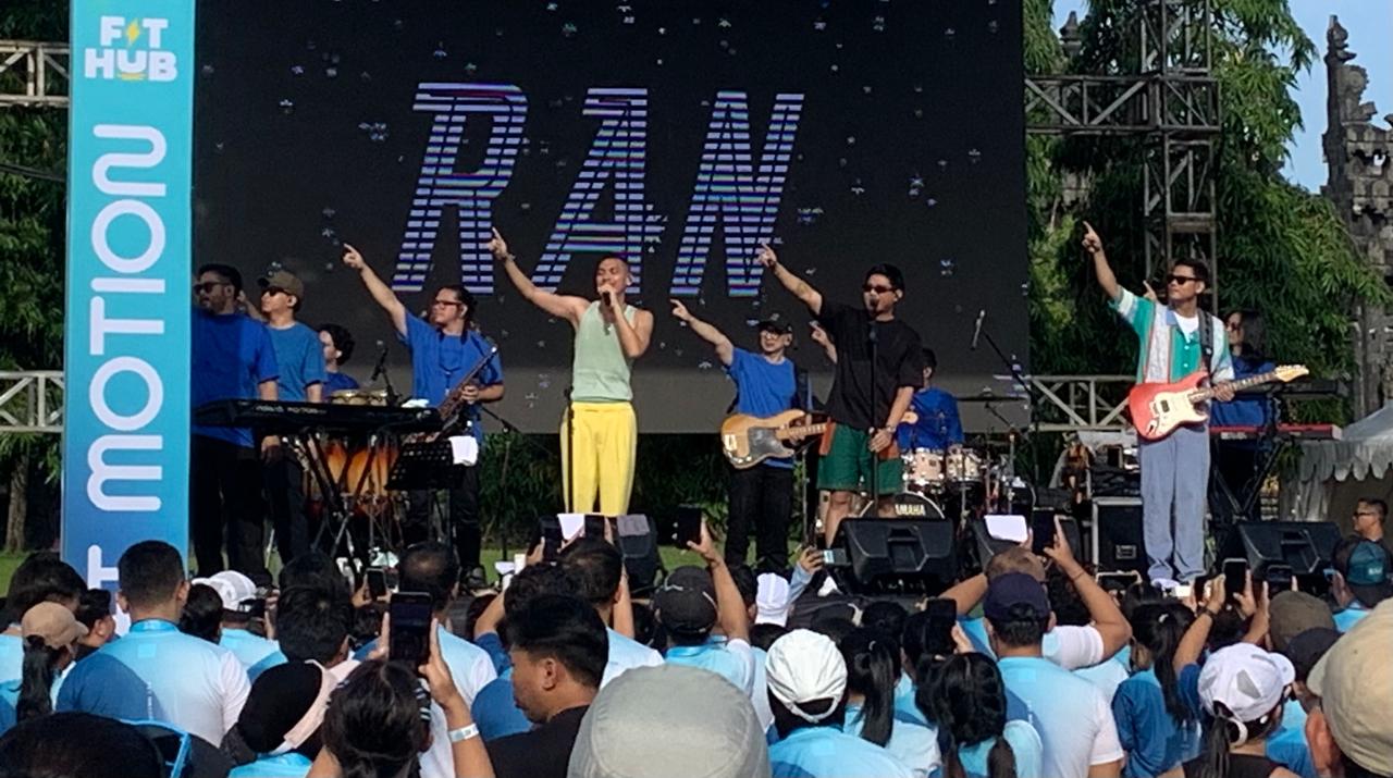 Beberapa lagu hits band yang sudah berdiri sejak 2006 itu memancing peserta untuk bernyanyi bersama. Tak pelak semangat mereka yang sebelumnya mengikuti lomba lari 5 kilometer serangkaian perayaan kehadiran 100 klub FIT HUB di Indonesia kian ‘terbakar’ saja.