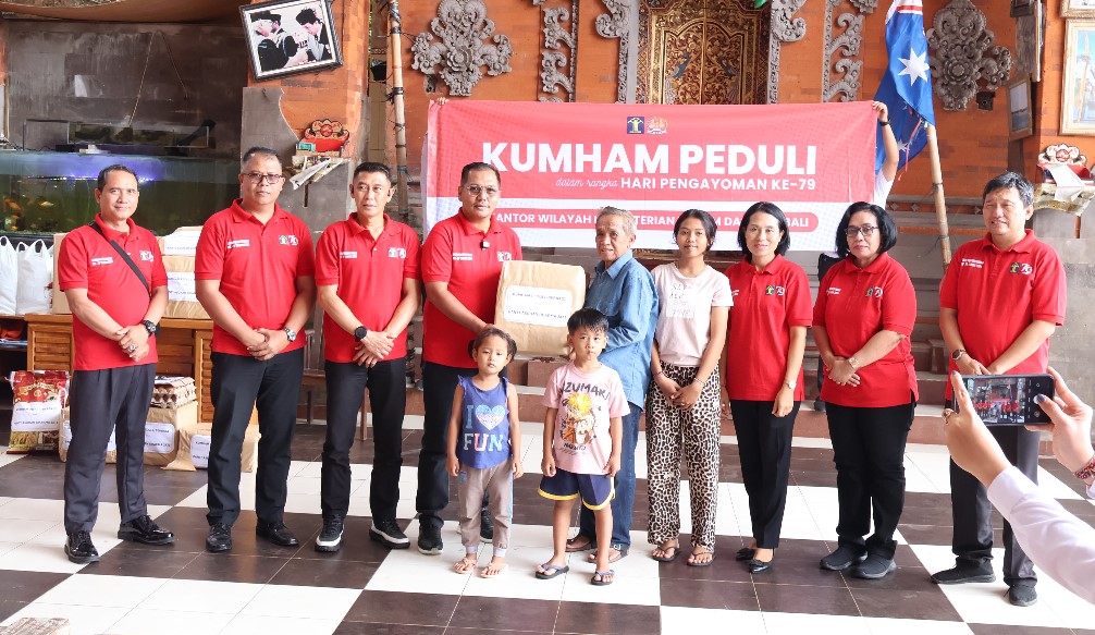 DENPASAR, kanalbali.id – Dalam semangat Hari Pengayoman yang ke-79, Kantor Wilayah Kementerian Hukum dan Hak Asasi Manusia (Kanwil Kemenkumham) Bali mengadakan kegiatan Bakti Sosial Kumham Peduli/Berbagi pada Rabu (7/8).