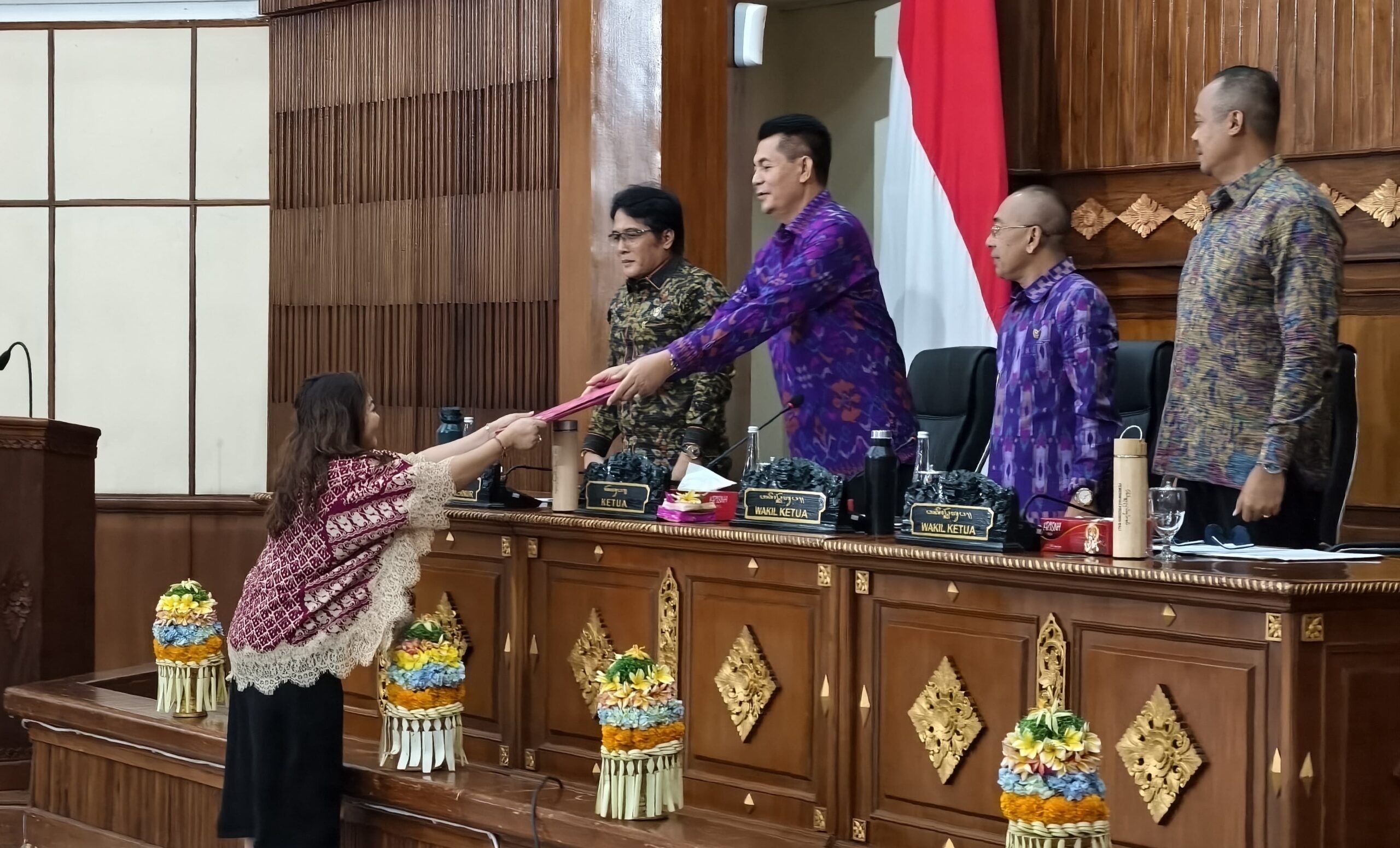 Ketua Komisi III DPRD Provinsi Bali, I Nyoman Suyasa, membacakan terkait kesepakatan dalam Perda ASK tersebut.