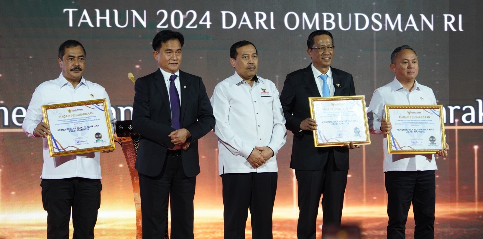 Dalam kesempatan ini, Kementerian Hukum, Kementerian Hak Asasi Manusia, dan Kementerian Imigrasi dan Pemasyarakatan berhasil meraih Penghargaan Penyelenggaraan Pelayanan Publik Tahun 2024 dari Ombudsman Republik Indonesia.