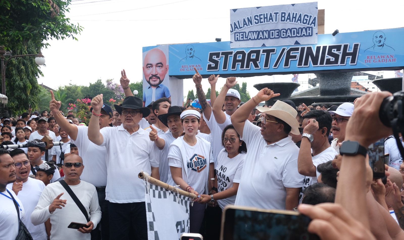 “Kegiatan Relawan De Gadjah ini tak ada kaitannya dengan kampanye Pilkada. Kami hanya berharap dengan kegiatan jalan sehat ini, kita semua terus diberikan kesehatan, suka cita, kegembiraan, kebahagiaan yang berlimpah serta terhindar dari rasa malas,” ungkapnya.