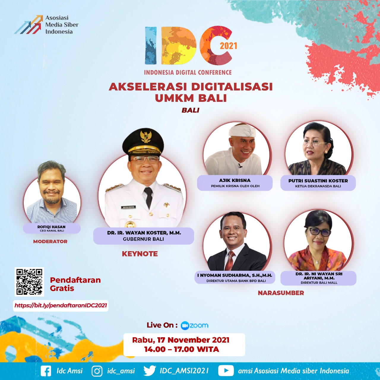 Serangkaian acara ini akan digelar Road to IDC untuk wilayah Bali pada Rabu 17 Nopember 2021 pukul 14.00 WITA – 17.00 WITA yang mengangkat tema “Akselerasi Digitalisasi UMKM Bali”.