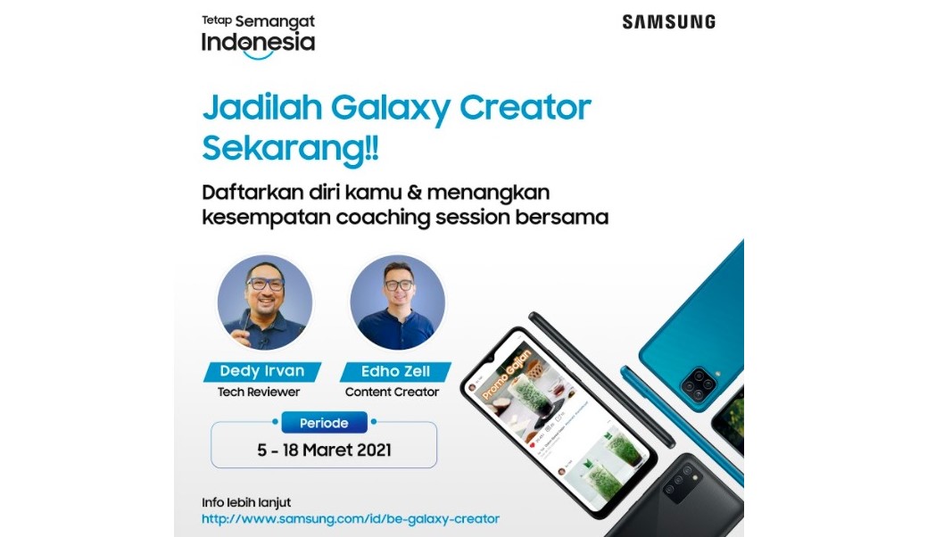 “Peran inovasi teknologi kini menghadirkan berbagai peluang baru untuk mewujudkan mimpi, terutama menjadi content creator di media sosial. Didukung Samsung Galaxy A12 dan Galaxy A02s dengan performa dahsyat dan harga terjangkau, Be A Galaxy Creator ini dirancang untuk Gen Z dan Milenial agar tetap semangat mengubah peluang menjadi karya nyata, dan membawa impiannya menjadi tech reviewer. Bekerja sama dengan tech reviewer dan content creator yang sudah menjadi inspirasi warganet saat ini, Samsung ingin membawa Gen Z dan Milenial terpilih untuk meningkatkan keterampilan dan kualitas konten mereka ke level berikutnya,” sebut Irfan Rinaldi, Product Marketing Manager, Samsung Electronics Indonesia.