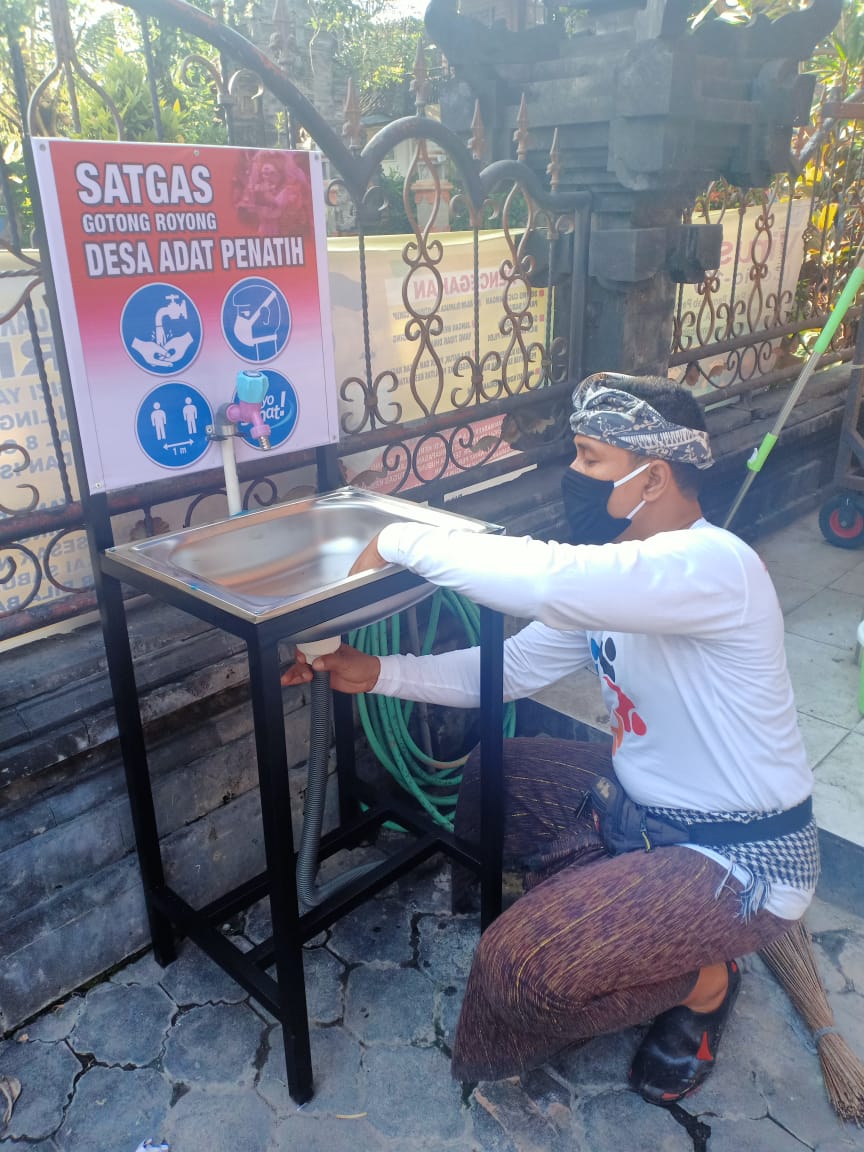 SATGAS COVID-19 Gotong Royong Desa Adat Penatih berupaya mensinergikan secara utuh semua elemen masyarakat. Salah-satunya dalam upaya pencegahan penularan yang dilakukan di desa ini.