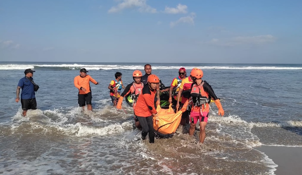 Korban tenggelam saat hendak menyelamatkan anaknya yang terseret arus saat mandi di Pantai Seminyak, Kecamatan Kuta, Badung, Bali, pada Minggu (3/8) kemarin sore.