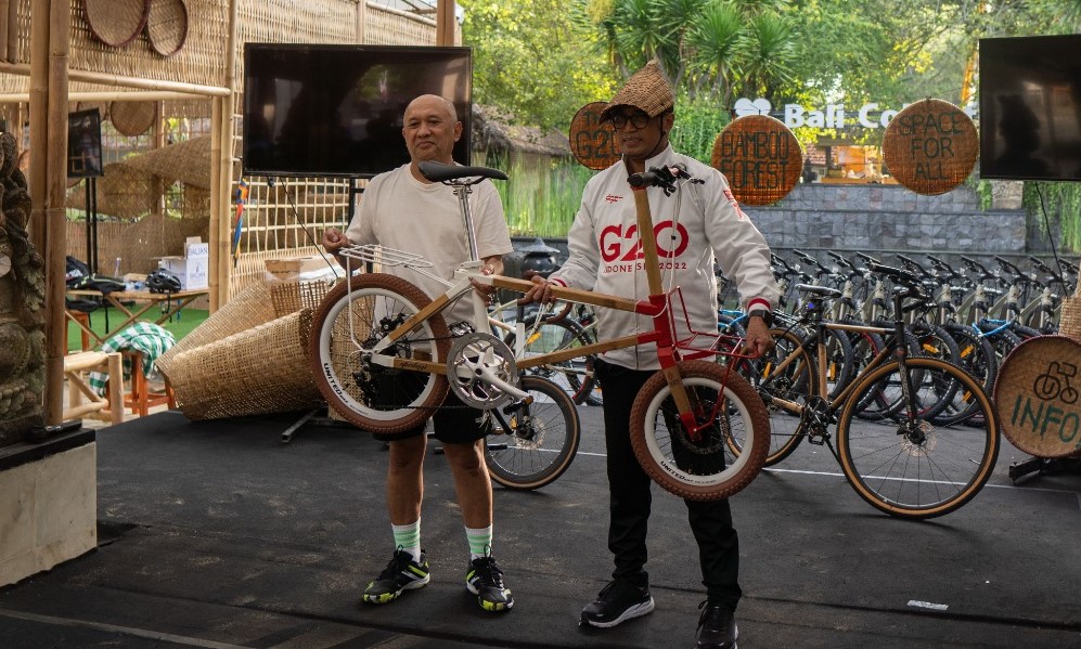 NUSA DUA, kanalbali.com – Menteri Perhubungan Budi Karya Sumadi serta Menteri Koperasi dan UKM Teten Masduki secara resmi meluncurkan sepeda bambu Spedagi United GORo Nusantara G20 pada Kamis (17//11) di pavilliun Hutan Bambu Nusantara G20, komplek Bali Collection, Nusa Dua.