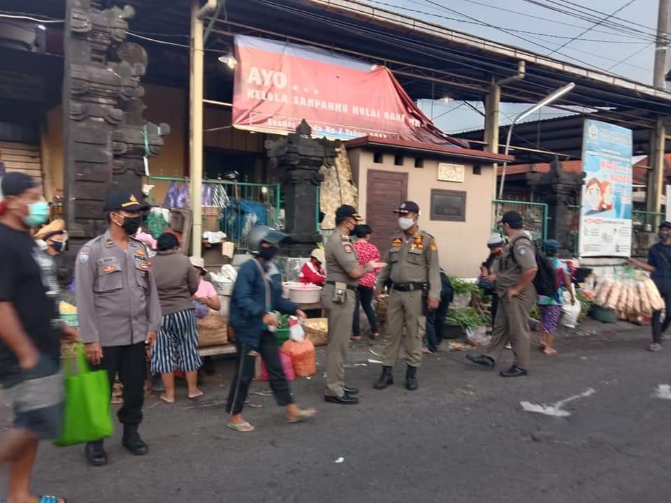Petugas gabungan saat memantau protokol kesehatan di Pasar Mambal, Badung. IST