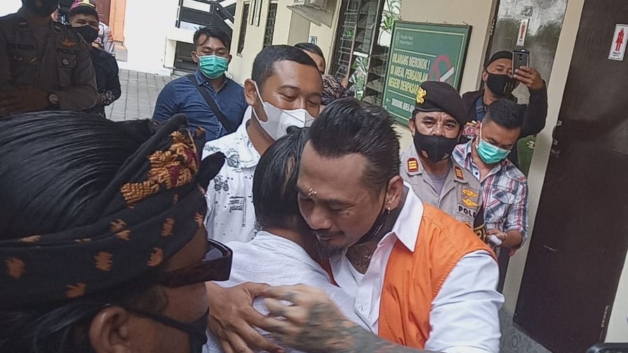 DENPASAR – Sesaat sebelum menjalani sidang pembelaan (pledoi), Jerinx meminta doa restu kepada ibu kandungnya, Selasa (10/11).