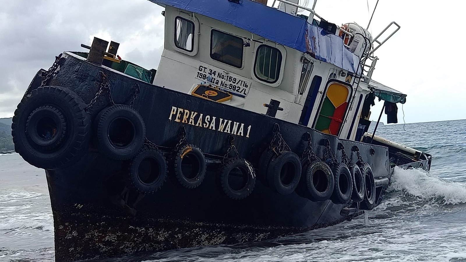 “Saat ini, kondisi kapal tongkang yang masih mengangkut alat berat crane dan pipa coran, diduga mengalami kebocoran dan terdampar di Pantai Tanah Ampo. Sedangkan tagboat sudah diupayakan dilakukan penarikan ke tengah laut oleh kapal Pertamina namun masih gagal karena air laut kurang pasang,” ujarnya.