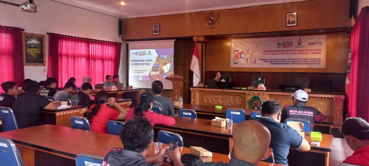 Kegiatan ini bertujuan untuk mendukung pengembangan potensi wisata di Desa Belalang melalui berbagai program dari sisi peningkatan kualitas Sumber Daya Manusia (SDM) dalam bidang teknologi. Pelatihan ini terdiri dari Lokakarya bagi pelaku wisata, Workshop fotografi sebagai peluang usaha, Workshop Canva dan video editing serta Pelatihan penguatan sosial media marketing.