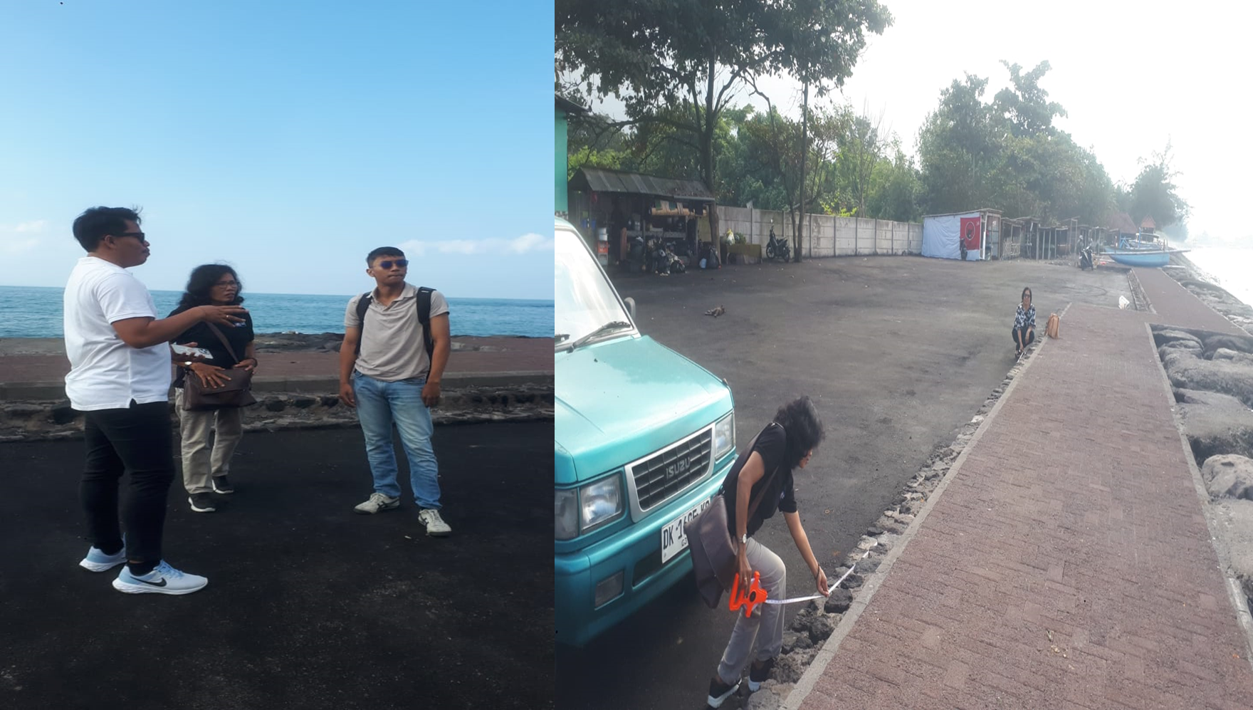 Selanjutnya Tim PkM melakukan kegitan survei dan pengukuran ke Pantai Lebih dan diskusi secara langsung dengan mitra (Kepala Desa Lebih) untuk mengidentifikasi kondisi eksisting terkait penataan parkir sehingga bisa dilakukan solusi penataan.