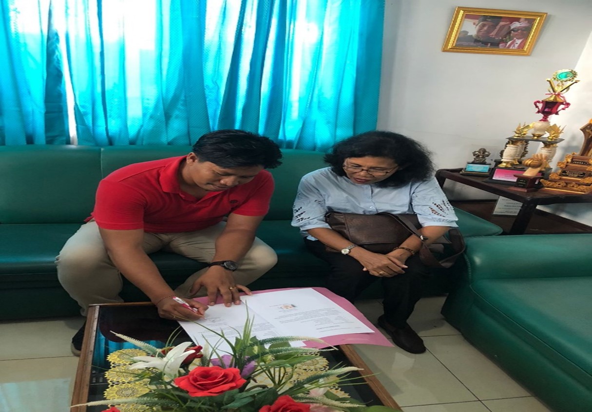 Penandatanganan Surat Kesediaan Mitra oleh Bapak Kepala Desa Lebih (kiri) yang didampingi oleh Ketua Pengabdian kepada Masyarakat (kanan)