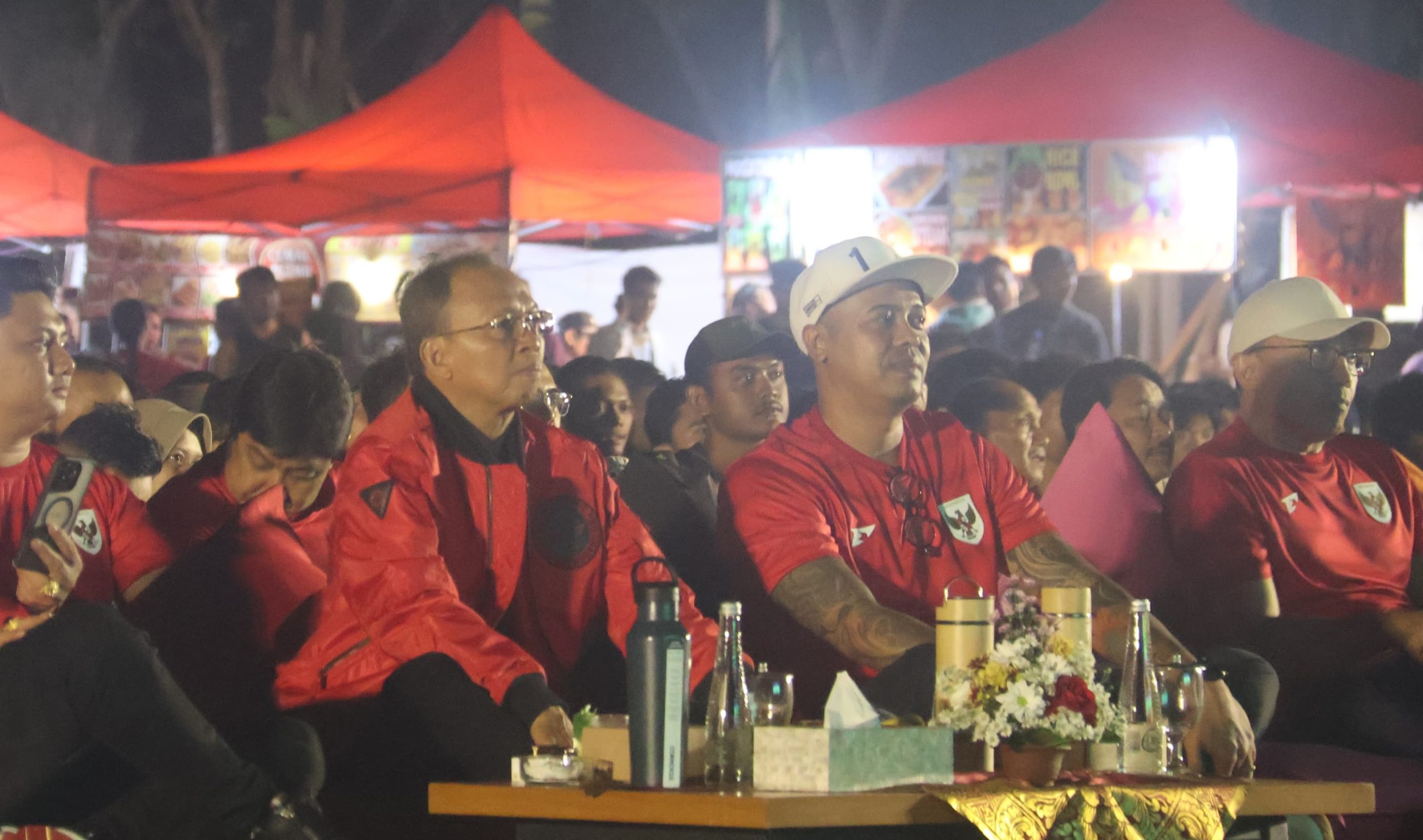 Gubernur Bali Wayan Koster dan Wakil Gubernur Bali I Nyoman Giri Prasta bersama ribuan masyarakat Bali menyaksikan laga versus China.