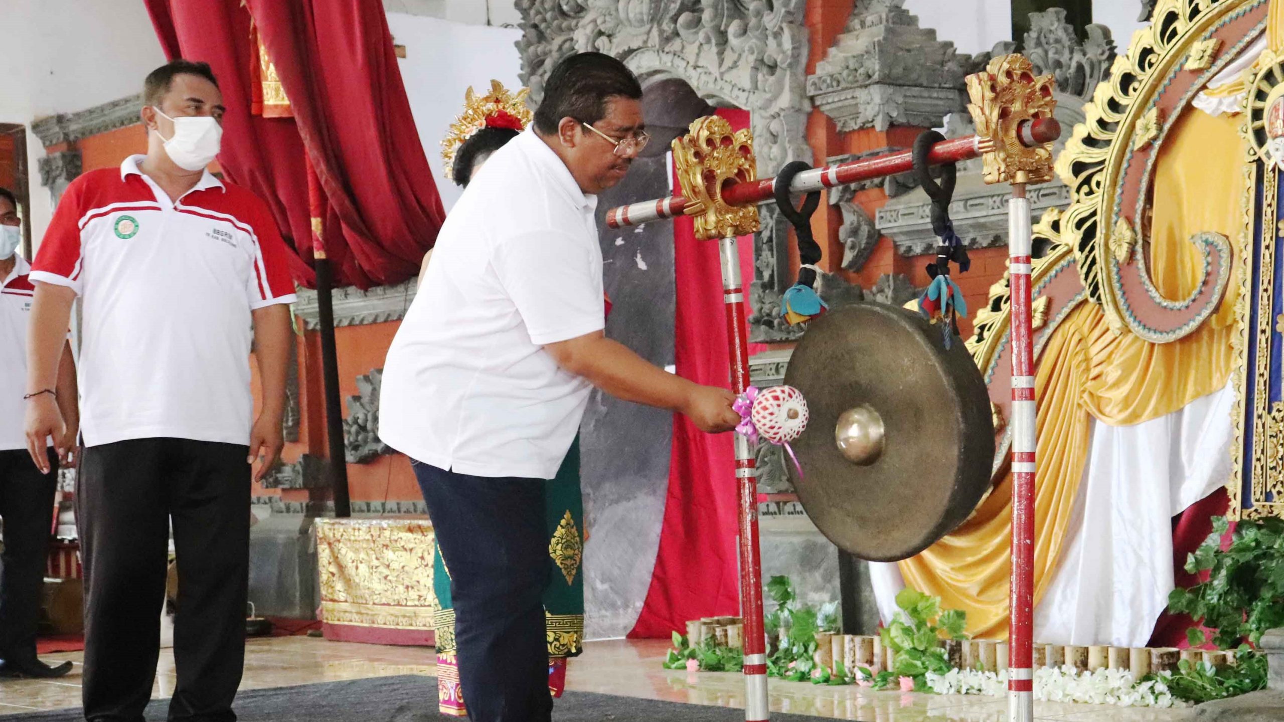 Bupati Buleleng saat membuka peringatan Bulan Bhakti Gotong Royong Masyarakat (BBGRM) yang diintegrasikan dengan Kegiatan Kesatuan Gerak PKK-KKBPK-Kesehatan dan Karya Bhakti Lembaga Pemberdayaan Masyarakat (LPM) tingkat Kabupaten Buleleng, di Gedung Serba Guna Desa Sanggalangit, Kecamatan Gerokgak, Selasa (31/5) - IST