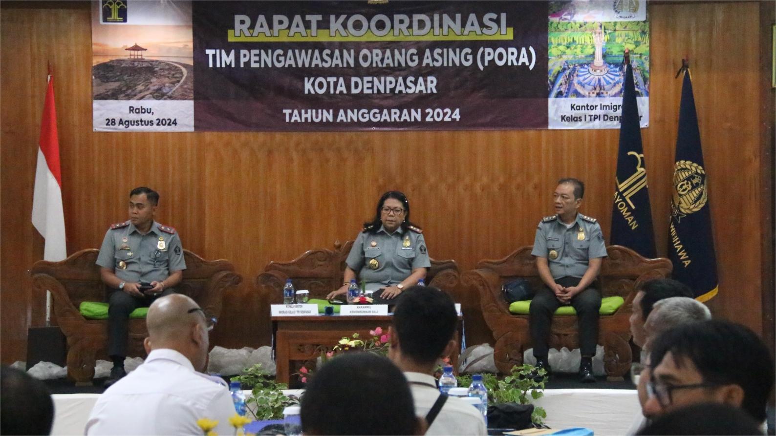Kegiatan ini dihadiri langsung oleh Kepala Kantor Wilayah Kementerian Hukum dan HAM Bali, Pramella Yunidar Pasaribu, Kepala Bidang Intelijen dan Penindakan Keimigrasian, Setyo Budiwardoyo, Kepala Kantor Imigrasi Denpsar, Ridha Sah Putra, serta perwakilan dari Instansi dan Lembaga yang tergabung dalam TimPORA Kota Denpasar.