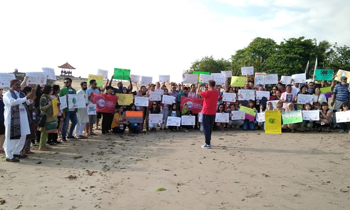 DENPASAR, Kanalbali – 800 ratus pekerja muda dari 21 negara di Asia Pasifik yang tergabung dalam federasi serikat pekerja global Public Services International (PSI) berkumpul dan melakukan aksi di Pantai Sanur, Denpasar, Hari ini (20/9). Mereka menyatakan keprihatinan atas ancaman perubahan iklim,