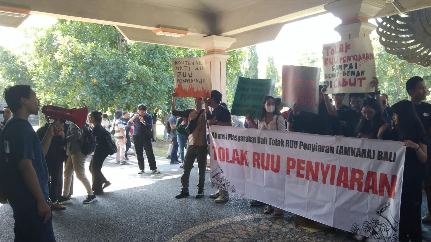 DENPASAR, kanalbali.id – Para jurnalis dan pekerja kreatif di Bali dari berbagai organisasi sepakat menolak Revisi Undang-undang (RUU) Penyiaran yang dianggap kontroversial dan mencederai kemerdekaan pers, di Kantor DPRD Provinsi Bali, Selasa (28/5).