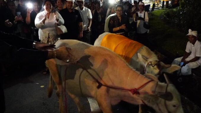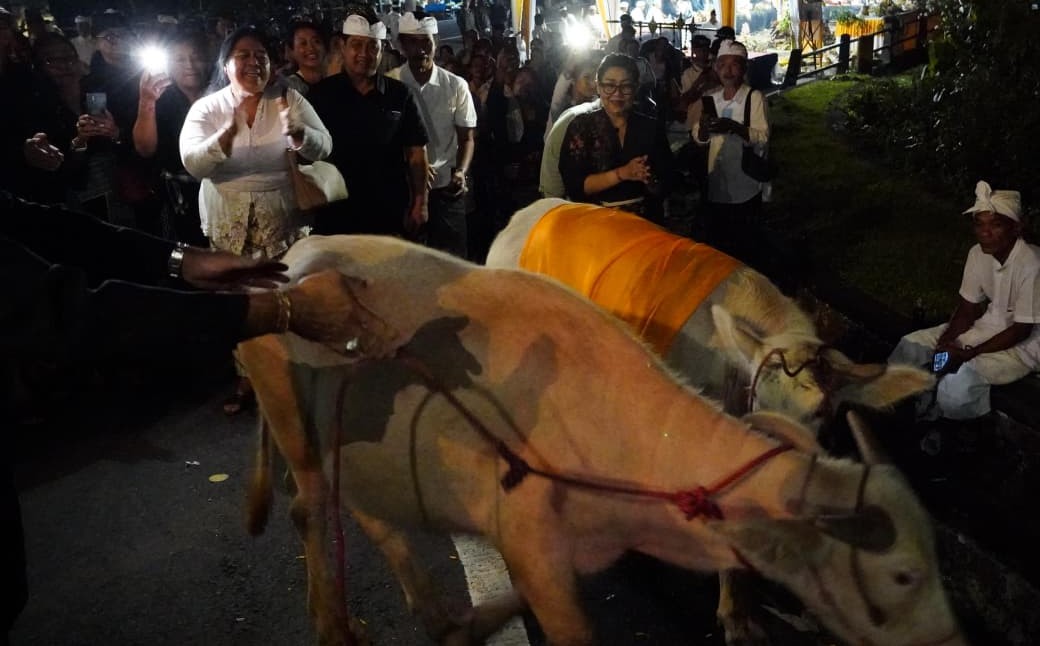 Sebagai bentuk dukungan, Wakil Gubernur Bali menyerahkan punia sebesar Rp25 juta, sementara Ibu Putri Suastini Koster menyumbangkan tiga ekor kerbau guna mendukung kelancaran pelaksanaan upacara.