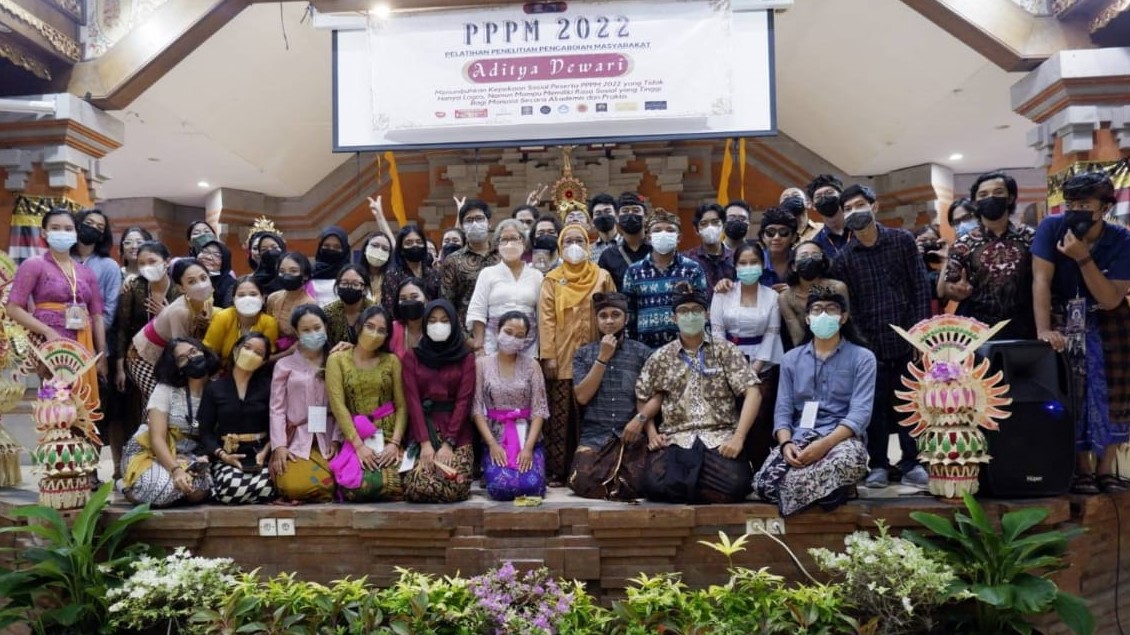Acara diakhiri dengan sesi foto bersama dosen, pemateri pembekalan, panitia dan peserta Pelatihan Penelitian dan Pengabdian kepada Masyarakat Tahun 2022. (kanalbali/RLS)