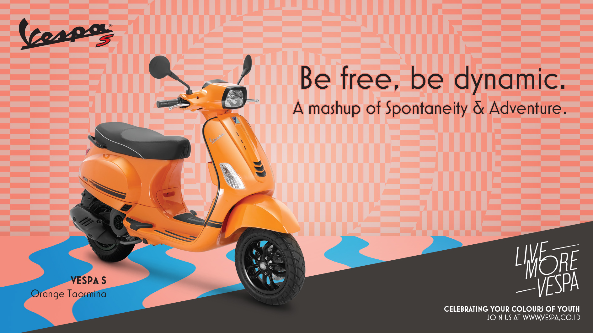 Tidak ketinggalan, terdapat warna khas Orange Taormina yang memberikan tampilan lebih agresif dan berani tampil beda, serta menunjukan bahwa sang pengendara memliki jiwa muda dan passion akan gaya dan hidup yang besar. Semua warna terbaru tersebut memiliki garis pemanis yang terletak pada sisi skuter yang memberikan tampilan lebih identik pada seri Vespa S.