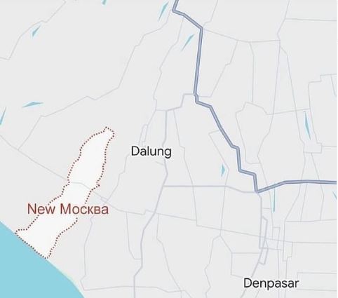 Di gambar peta itu, malah peta di wilayah Canggu diganti bernama New Moscow. Penamaan daerah tersebut tertulis dalam bahasa Rusia “New Москва” yang merujuk ke wilayah Kuta Utara, atau Canggu.