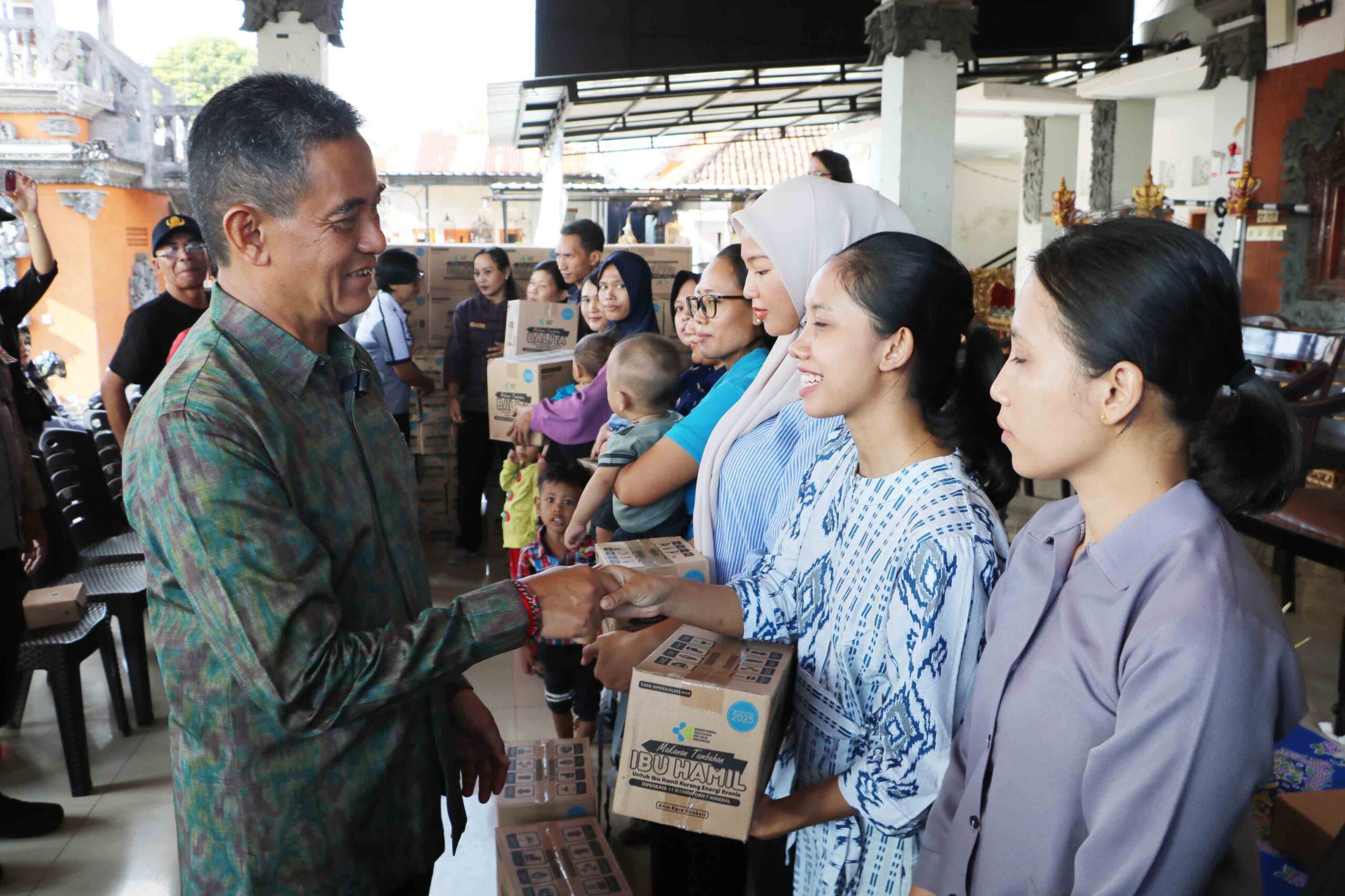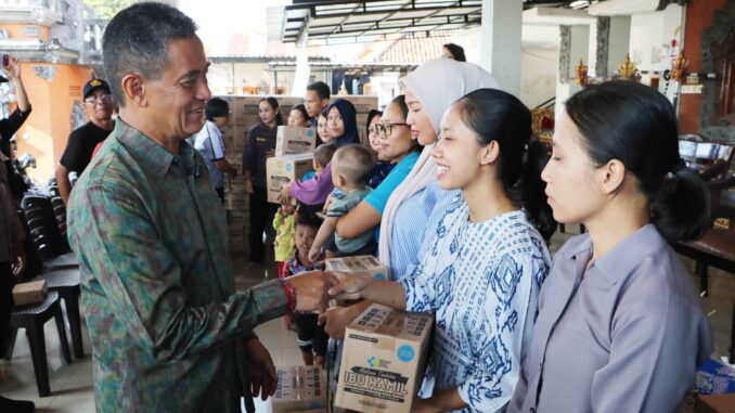 Salah satu langkah konkret dilakukan melalui penyaluran bantuan makanan tambahan bagi balita terdampak stunting dan ibu hamil. Kegiatan ini dipimpin langsung oleh Wakil Bupati Buleleng, Gede Supriatna, di Kelurahan Banyuasri, Kecamatan Buleleng, Jumat (24/4), sebagai bagian dari komitmen pemenuhan gizi masyarakat.