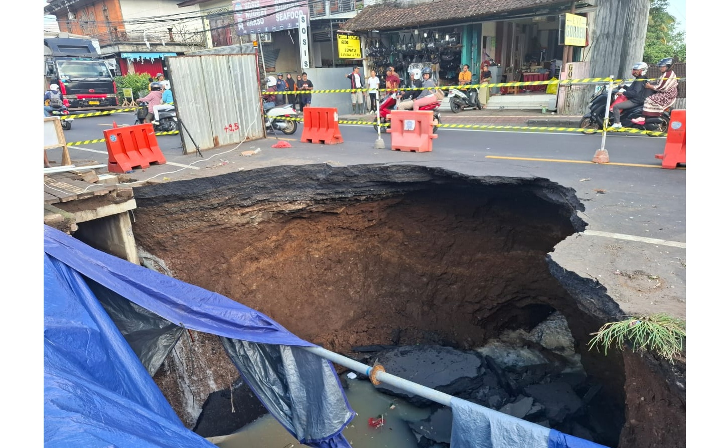 Sebelumnya, sebuah lubang raksasa muncul di jalan depan Pasar Bajera, Kecamatan Selemadeg, Kabupaten Tabanan, Bali.