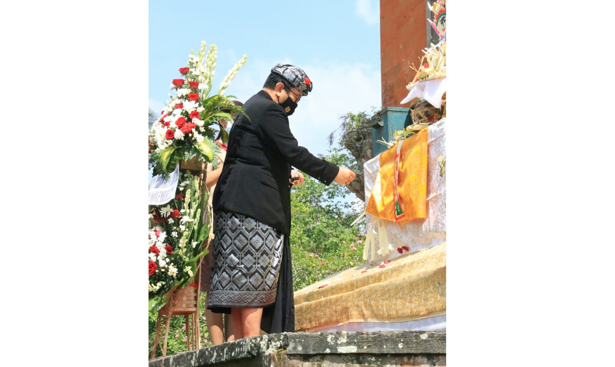 Usai pembacaan sejarah Puputan Margarana, Wagub Cok Ace didampingi Wakapolda Bali Brigjen Pol I Wayan Sunartha dan peserta ziarah lainnya beranjak menuju candi utama yang merupakan lokasi gugurnya Pahlawan I Gusti Ngurah Rai. Setelah pembacaan surat sakti I Gusti Ngurah Rai dan prosesi penghormatan, Wagub Cok Ace meletakkan karangan bunga sebagai simbul penghormatan di depan candi utama atau yang juga disebut dengan Canti Pahlawan Margarana. Prosesi dilanjutkan dengan tabur bunga mengelilingi candi utama dilanjutkan dengan tugu pahlawan lainnya. Total candi pahlawan yang ada di kawasan ini sebanyak 1.372, menggambarkan jumlah pejuang yang gugur di medan perang saat peristiwa Puputan Margarana.