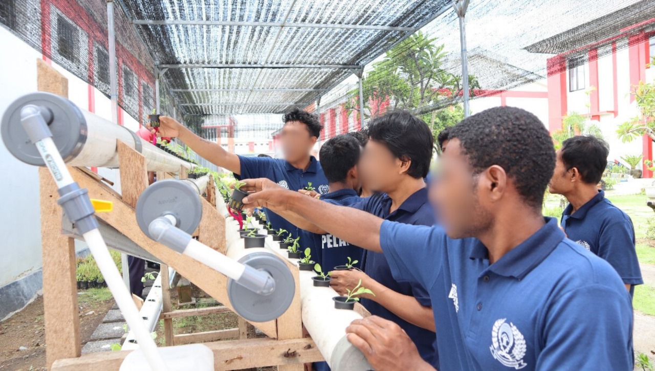 DENPASAR, kanalbali.id – Lembaga Pemasyarakatan (Lapas) Kelas IIA Kerobokan berhasil menuntaskan tahap awal penanaman bibit sayur Pokcoy dan buah Melon melalui metode hidroponik, yang merupakan bagian dari program pembinaan kemandirian warga binaan dalam mendukung ketahanan pangan.