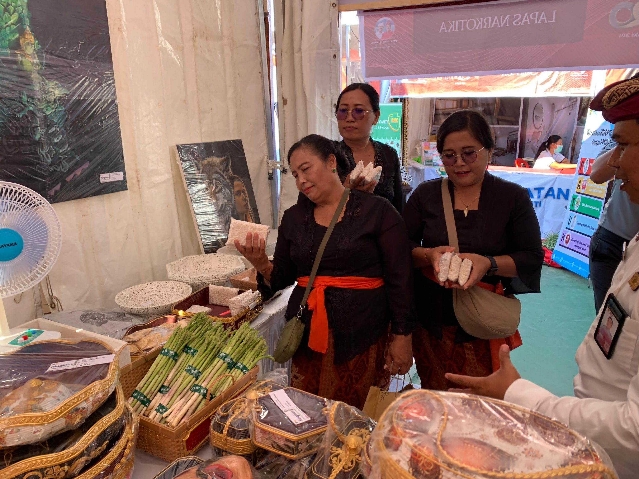 Dalam pameran ini, Lapas Narkotika Bangli menampilkan beberapa produk unggulan yang menjadi hasil pembinaan kemandirian narapidana seperti keben koran, pot teraso, asparagus, tahu, tempat dan produk-produk lainnya. Tidak hanya ditampilkan, produk produk WBP Lapas Narkotika Bangli yang tersedia ini juga dapat dibeli untuk digunakan oleh masyarakat yang berkunjung. Adapun salah satu produk yang paling laris terjual adalah tempe hasil karya WBP yang sangat diminati khususnya oleh kalangan ibu ibu yang datang ke pameran.