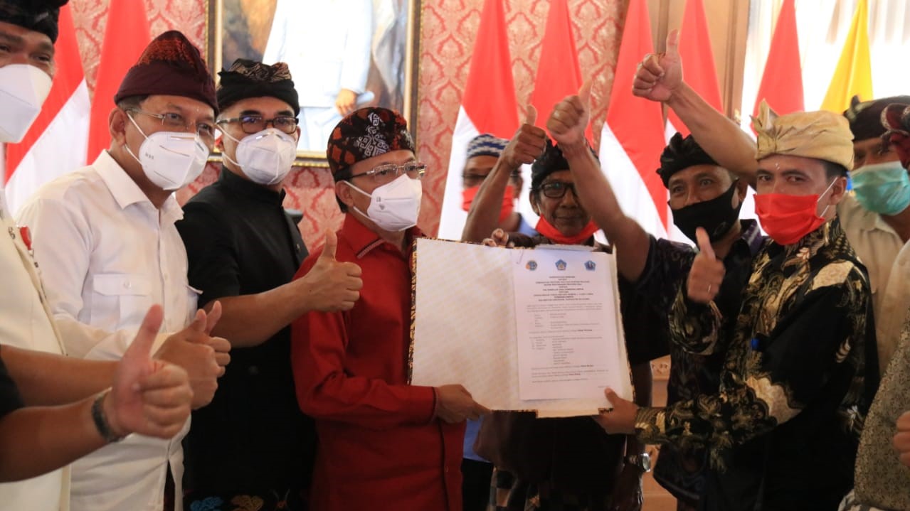 DENPASAR  – Asa 900 Kepala Keluarga (KK) masyarakat Desa Sumberklampok, Gerokgak, Buleleng, untuk menyudahi permasalahan agraria yang sudah berlangsung puluhan tahun akhirnya bisa segera terwujud.  Hal ini ditandai dengan penandatanganan Nota Kesepakatan Bersama Antara Pemerintah Provinsi Bali dan Kantor Wilayah Badan Pertanahan Negara Provinsi Bali dengan Tim 9 Desa Sumberklampok oleh Gubernur Koster di Kediaman Jayasabha, Denpasar, Kamis (26/11).